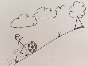 I am sat at my desk pondering what to write in today’s blog and I’m distracted by a kid, who is only just a little bigger than the ball he’s trying to kick. We live on a hill and, yes, he’s trying to kick it up the hill.